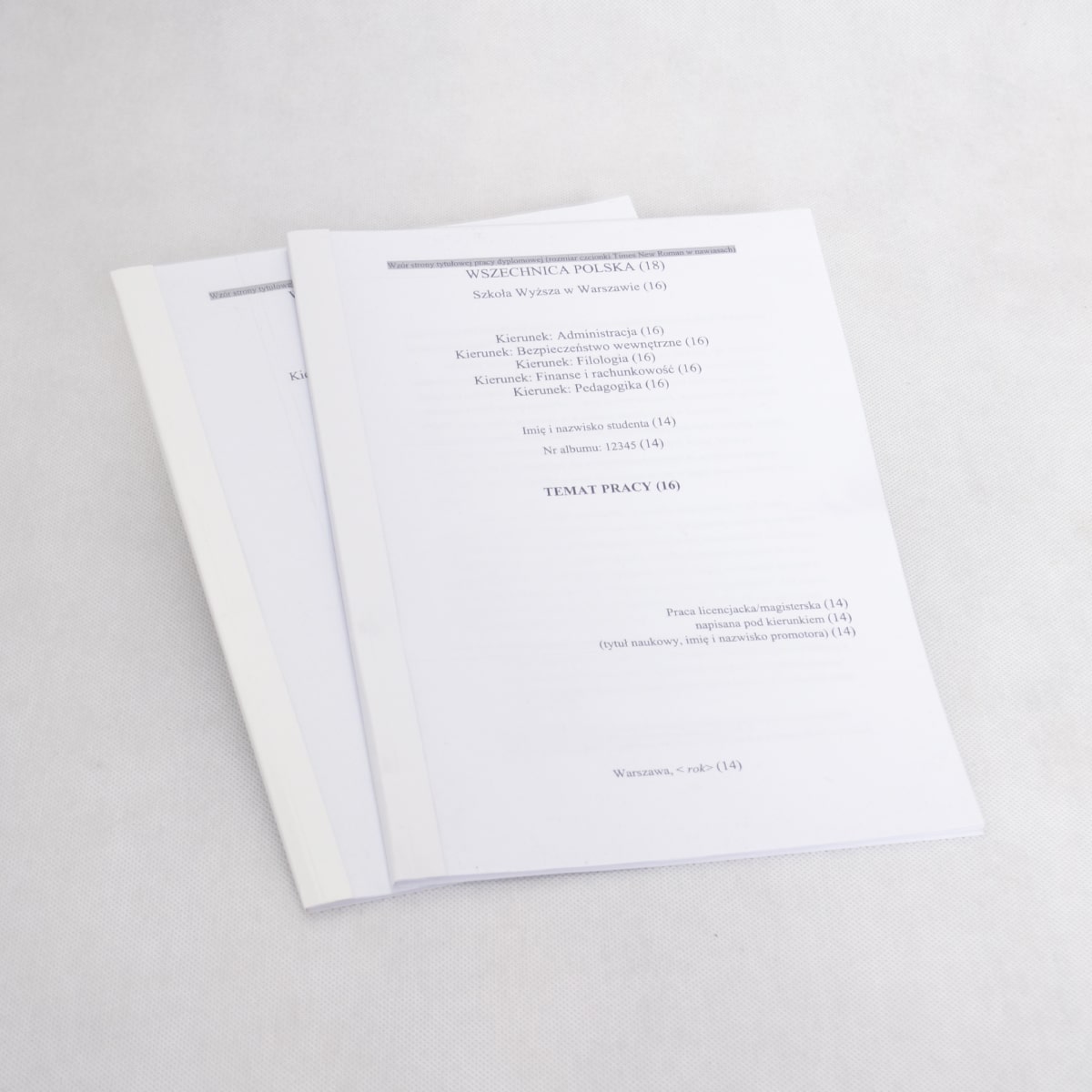 Dzięki oprawie miękkiej termicznej Twoja praca dyplomowa w miękkiej oprawie będzie wyglądała profesjonalnie, gotowa do prezentacji czy archiwizacji.